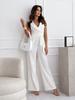 Mono de Mujer con Cuello en V Profundo, Sin Mangas, Pierna Ancha y Lazo en la Cintura en Colores Sólidos