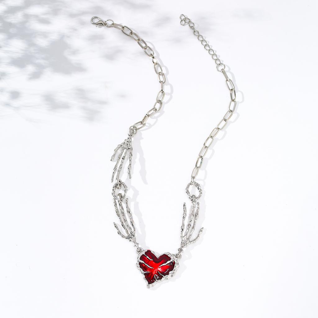 Sweet and Cool Ghost Claws Splicing Red Love Necklace Niche Design Exaggerated Punk Style Collarbone Chain Necklace