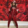 Women's Fashion Hooded Long Sleeve Slim Zipper Sports Casual Velvet Suit