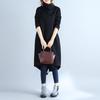 Vestido de Algodón y Lino con Forro Polar de Talla Grande Estilo Étnico 2017 con Cuello Alto