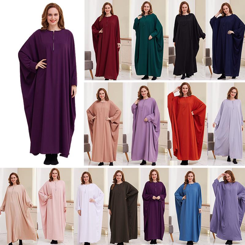 Big Swing Batwing Sleeve Solid Color Muslim Dress XG2056