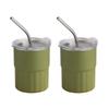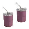 2pcs Stainless Steel Coffee Mugs Set Drinkwares with Straw and Lid Stackable Double Walled Cup for Camping and Outdoor