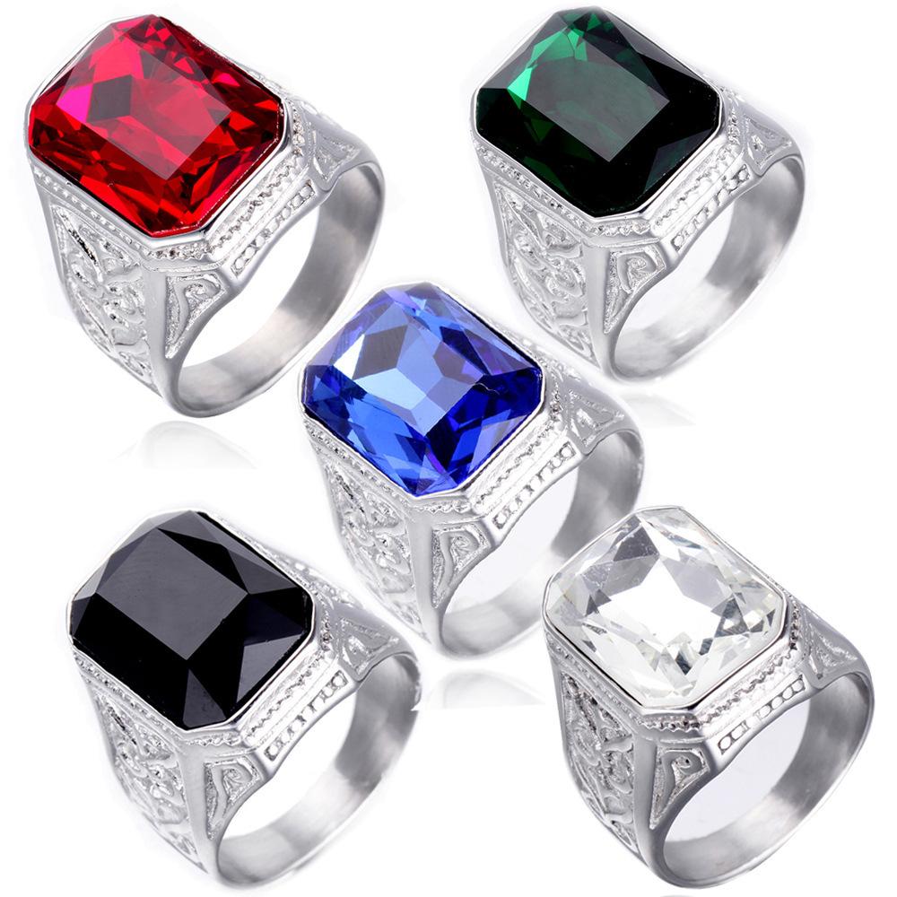 2025 Vintage Ancient Silver Color Ring Green Stone 316L Stainless Steel Rings for Men Women Unisex Hip Hop Fashion Jewelry