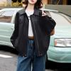 Chaquetas Retro para Mujer Primavera y Otoño Nuevas Empalmadas Cuello Alto Bolsillo con Cremallera Moda Sólido Suelto Casual Manga Larga
