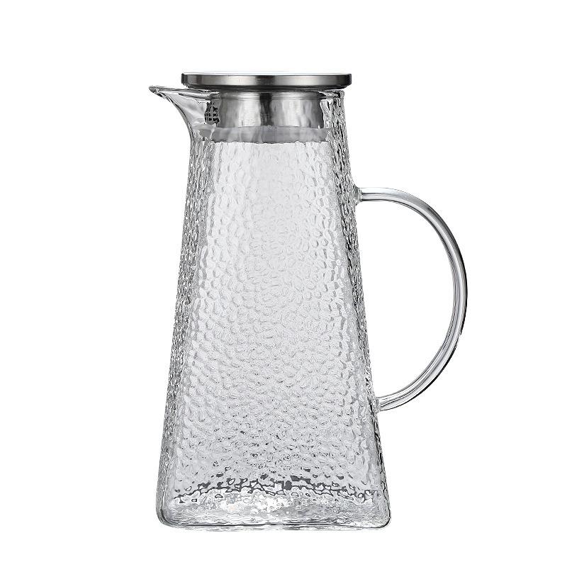 Jarra de Agua Fría de Vidrio Transparente con Patrón de Martillo Alto Borosilicato Gran Capacidad Tapa de Acero Hervidor para Secar Agua Hirviendo Jarra Cuadrada para Jugo