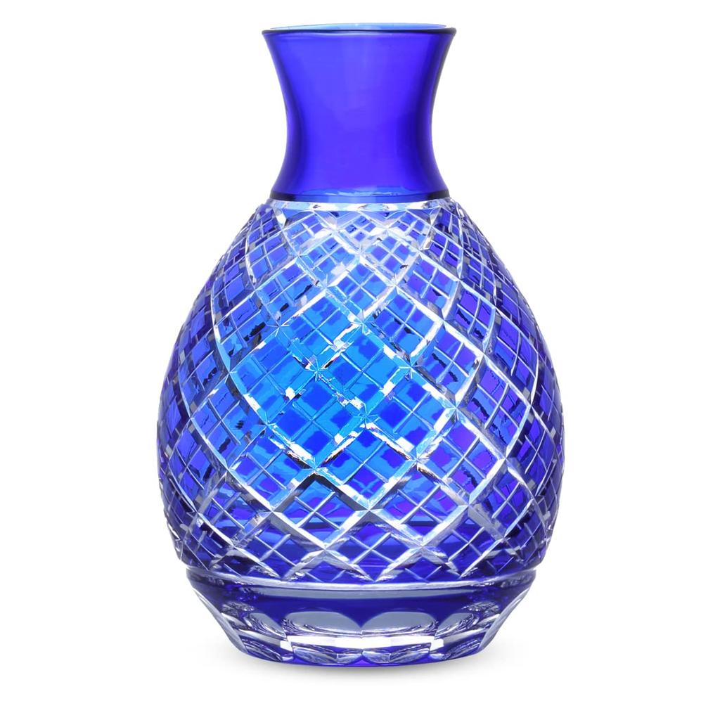 Nostalgia Kiriko Sake Diamond Current Model J-kitchens Bottle, 38xH125mm, 280cc, Pattern, Blue,