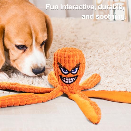 Engage your dog in interactive play with the built-in squeaky sound of this bearded octopus toy. The enticing squeak captures your pet's attention, fostering playful interactions and making it a preferred choice among bearded dog toys for lively game sessions.