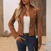 Chaqueta de mujer, informal, ajustada, con solapa y doble botonadura, para motociclista, abrigo superior