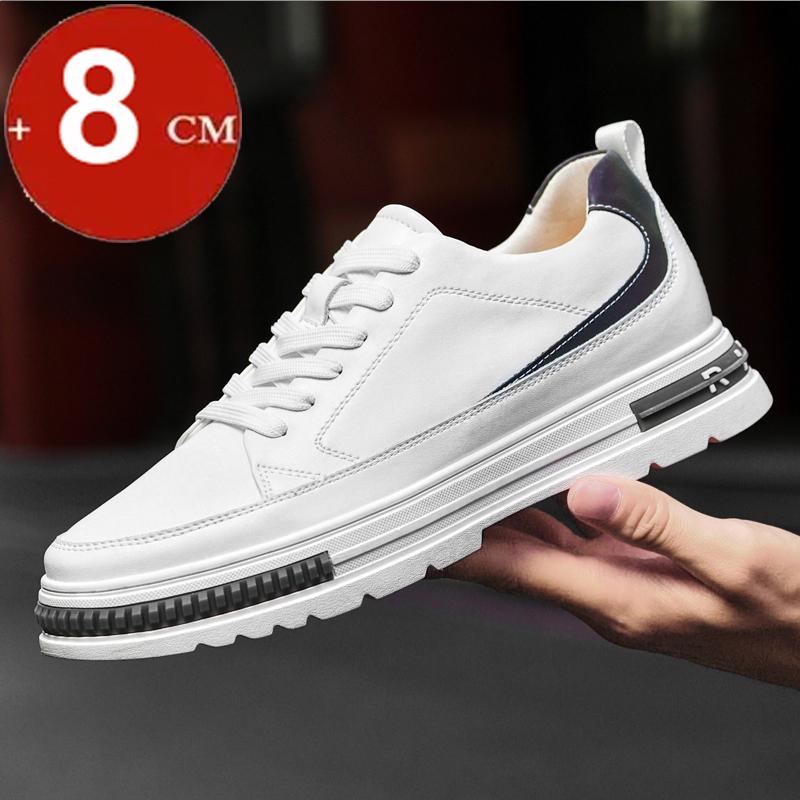 Zapatos Elevadores de 8cm Zapatillas de Plataforma de Cuero Genuino para Hombre con Suela Gruesa y Aumento de Altura Oculto - Zapatos Deportivos Casuales de Corte Bajo