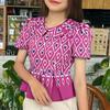 ZANZEA Women Doll Collar Summer Casual Short Sleeve Print Blouse