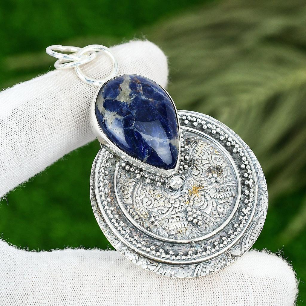 Friendship Day Sale 925 Sterling Silver Pear Sodalite Gemstone Pendant Jewelry