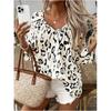Temperament Commuting Top Leopard Print Large V-neck Pleated Seven Quarter Sleeve Women's Blouses & Shirts