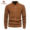Camel Suéter de punto de alta calidad para hombre, cárdigan de color sólido con bordado de nueva tendencia para otoño e invierno.