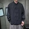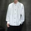 Camisa de Otoño para Hombre Cuello Mao Camisas Oversize Hombre Manga Larga Camisas Estilo Chino Formal Negro Blanco Casual Tops Retro