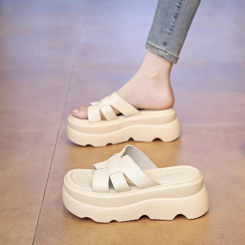 Fashion one-word drag outer wear summer new beach non-slip thick-soled heightening sandals women