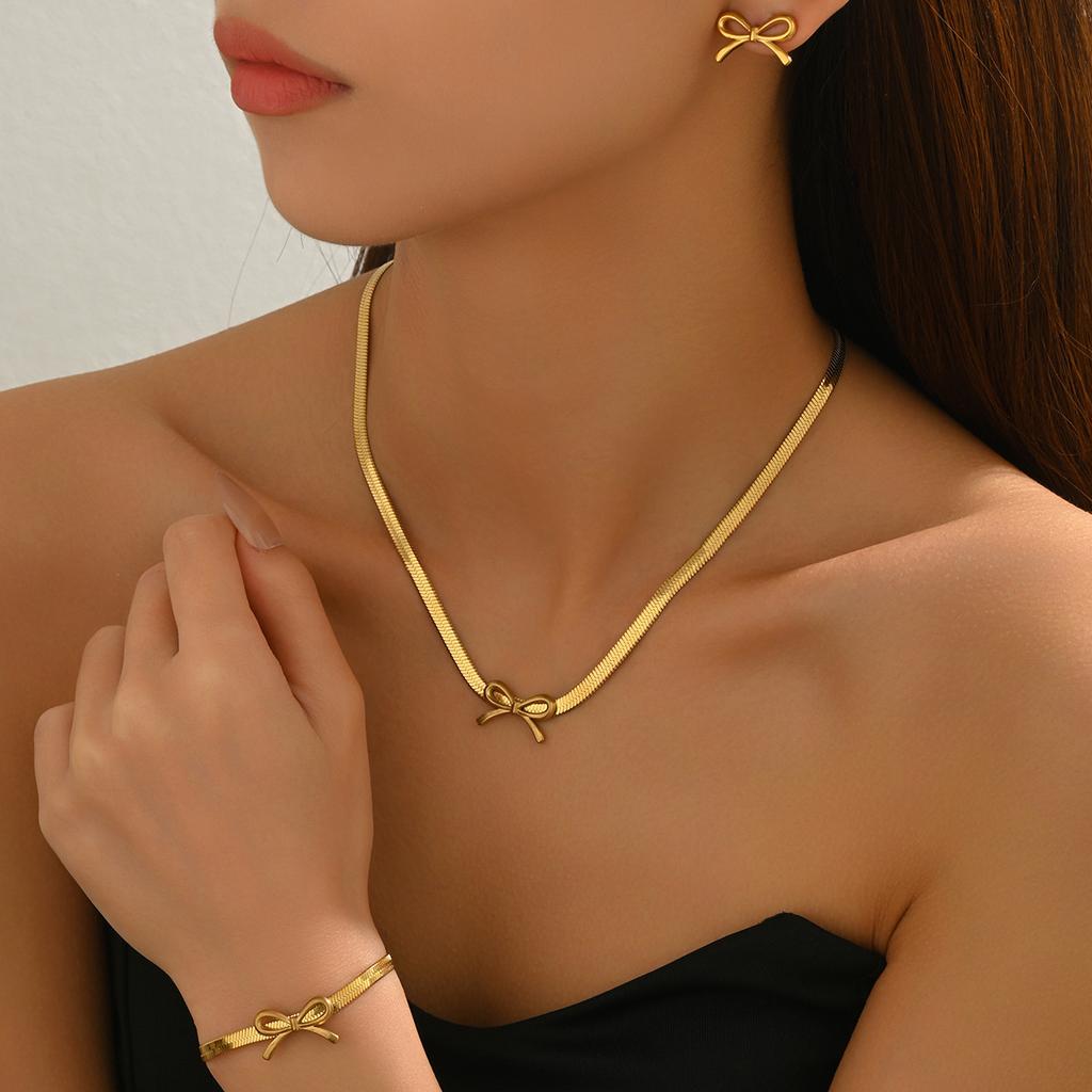 Wind jewelry, geometric bow design necklace, earrings set, niche high-end earrings for women