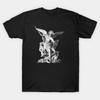 San Miguel Arcángel Derrotando al Dragón Boceto Pintura Arte Camiseta Algodón Premium Manga Corta Cuello Redondo Hombre Camiseta Nueva
