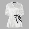 ZANZEA Women Turn Down Collar Loose Casual Short Sleeve Patchwork Satin Blouse