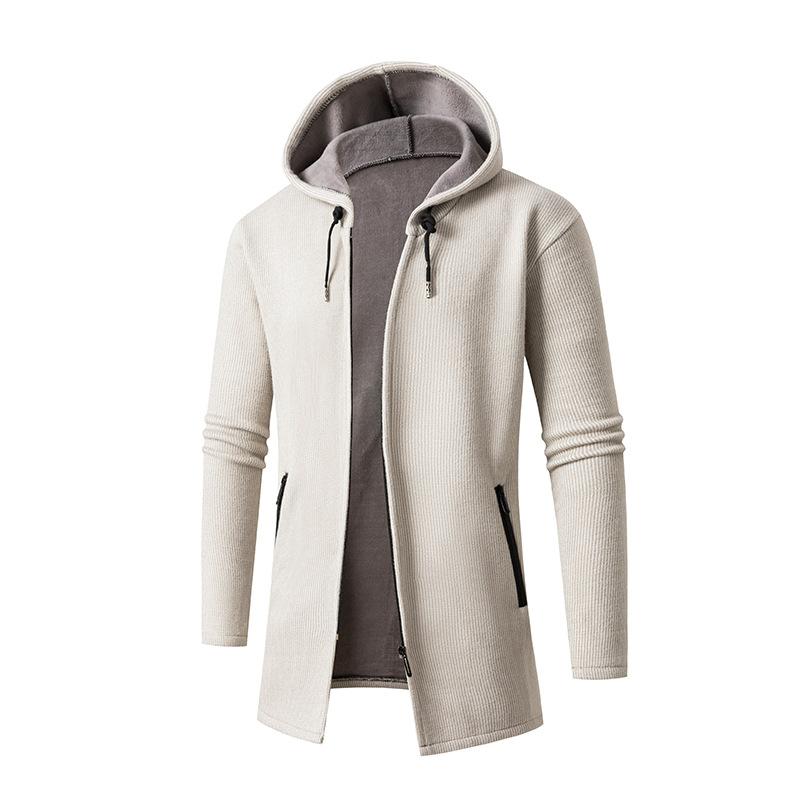 Casual Negocios Nuevo Cárdigan de Punto para Hombre de Largo Medio con Capucha y Acolchado de Terciopelo Grueso