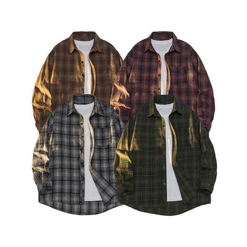 Men's Long-sleeved Plaid Shirt Loose Jacket Men's and Women's Shirt Versatile Handsome Men's Hairy Shirt