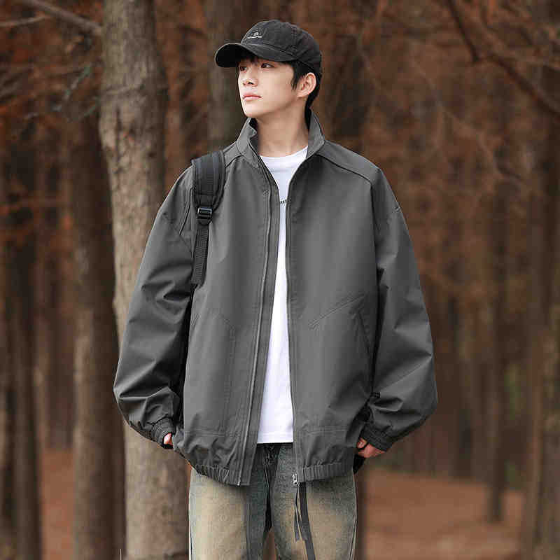 American Jacket Jacket for Men's Spring and Autumn New Loose Stand Collar Workwear Casual Jacket Jacket