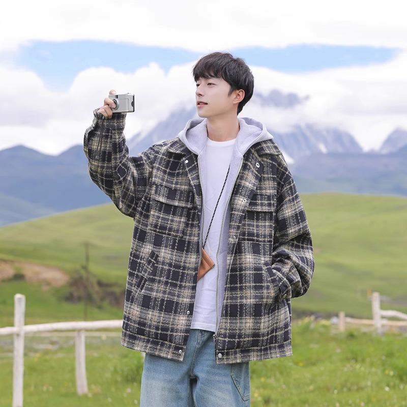 Fake Two-piece Plaid Jacket for Men In Autumn and Winter New Casual Teenager Handsome Jacket Top