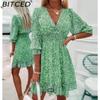 BITCED Summer Floral Print Mini Dresses Women Vintage Sexy A-Line V-Neck Half Sleeve Party Dress Female Casual Elegant Beach Dress