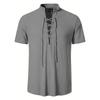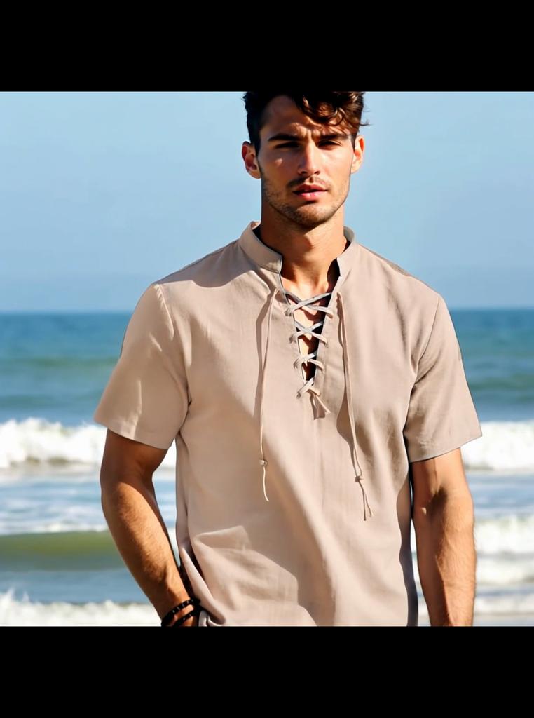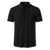 Men's Retro Shirt Short Sleeve Cotton Linen Lightweight Breathable Solid Color Fashion Tops Pirate V-neck Male Stylish Shirs