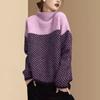 Suéter de punto de bloques de color retro de cuello semi alto Otoño/invierno Nuevo suéter holgado