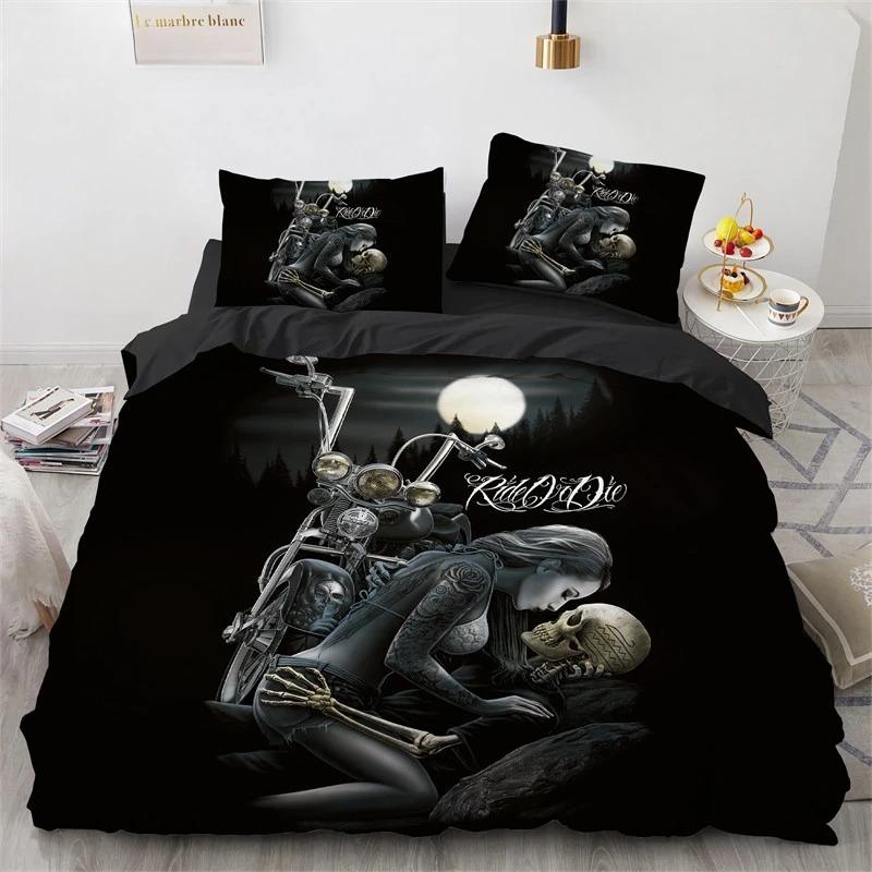 Juego de Cama 200x200cm Chica Calavera Negro Nupcial Microfibra Funda Nórdica Funda de Almohada con Cremallera, Cama Individual Doble Regalo de Lujo