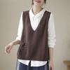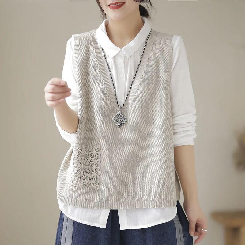 Chaleco fino de punto calado con cuello en V para mujer, ropa exterior ponible, estilo coreano holgado de color sólido, cárdigan estilo japonés