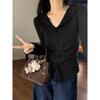 Lapel fungus edge knitted cardigan sweater women's autumn new slim waist top trendy