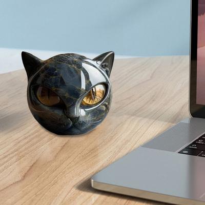 Escultura de Piedra de Gato Negro de Resina Curación con Cristales Elegante Figurilla de Gato Negro Estatua Decorativa