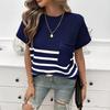 Suéter de mujer de manga corta con cuello redondo y bloques de color a rayas
