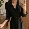 Korean Minimalist Tie-Waist A-Line Shirt Dress for Women