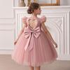 Este encantador vestido para bebé niña es perfecto para ocasiones especiales como bodas o eventos de verano.. Con un diseño de cuello en V, cuenta con encantadoras mangas abullonadas y un gran lazo que añade un toque de elegancia.. Confeccionado en poliéster de alta calidad, el vestido ofrece tanto comodidad como estilo. Su falda princesa de malla está adornada con delicados detalles florales, lo que la convierte en una elección ideal para un atuendo de niña de las flores.