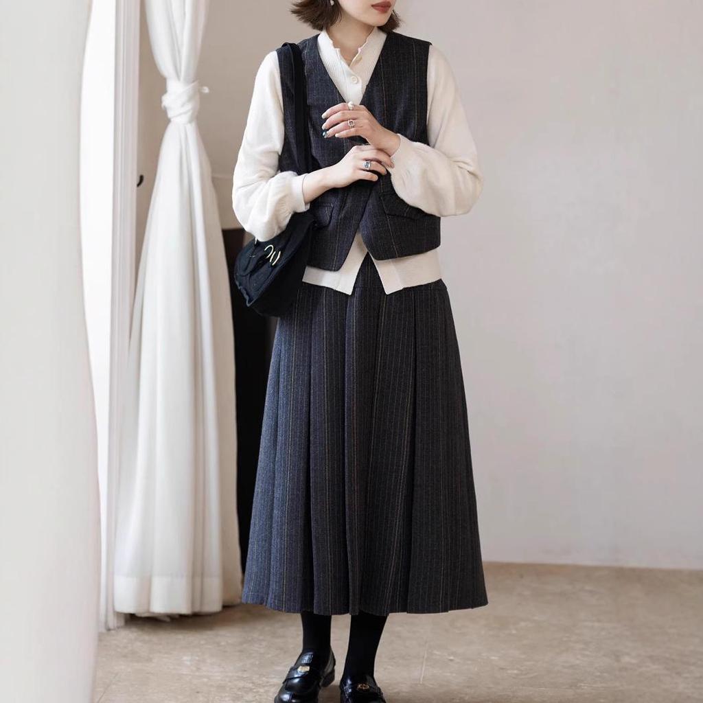 Ink Line Studio "Hogwarts" Retro Plaid Wool Suit & Vest Set with Pleated Skirt
