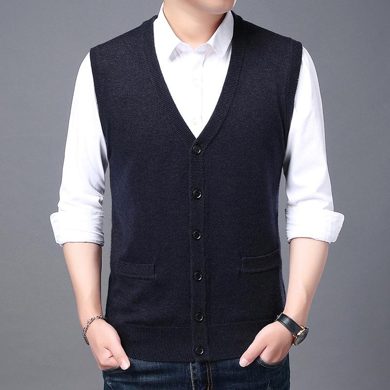 Middle-aged Men's Cardigans with Wool Vests Are Fashionable and Casual, and Their Father's Vest Tops, Sweaters and Vests Are Worn Inside.