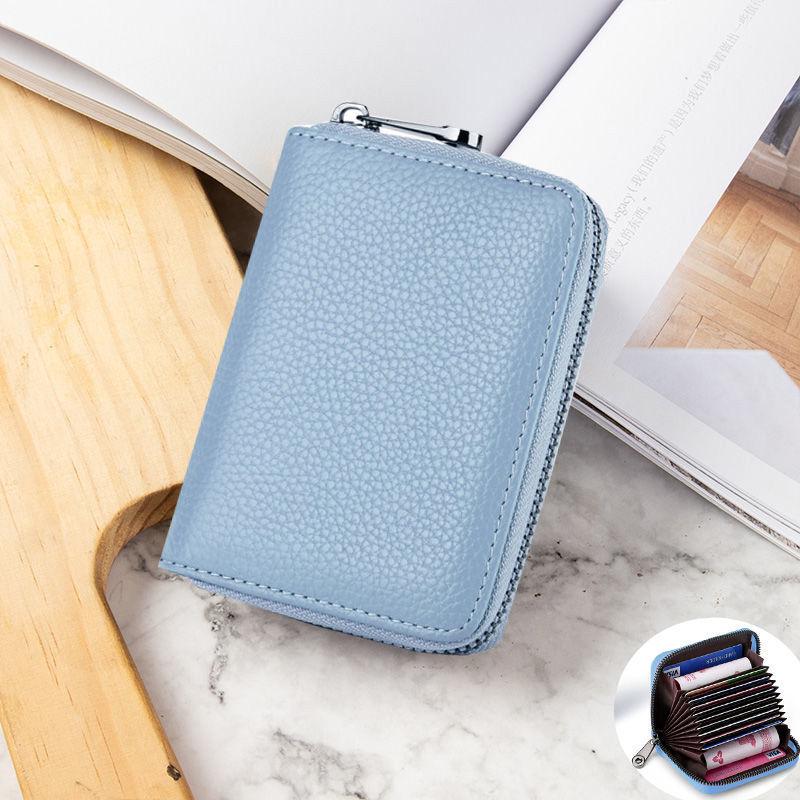 Minimalist Anti-Demagnetization & Anti-RFID Zipper Leather Card Holder with Large Capacity and Coin Purse