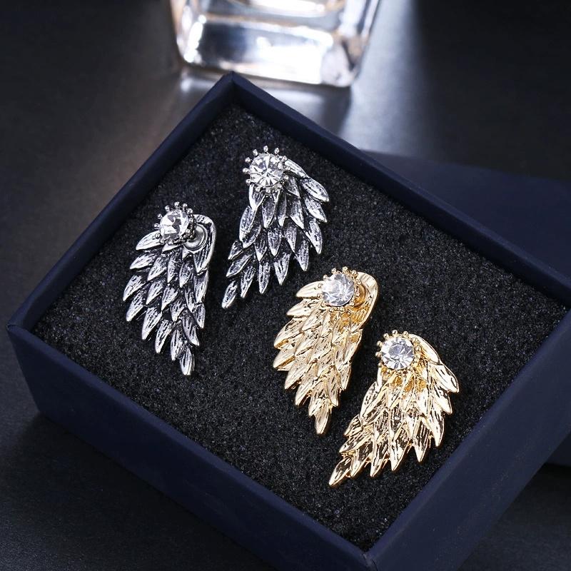 Fashion Angel Wings Diamond Stud Earrings Gothic Cool Jewelry Alloy Retro Zircon Eardrop Girls Gift
