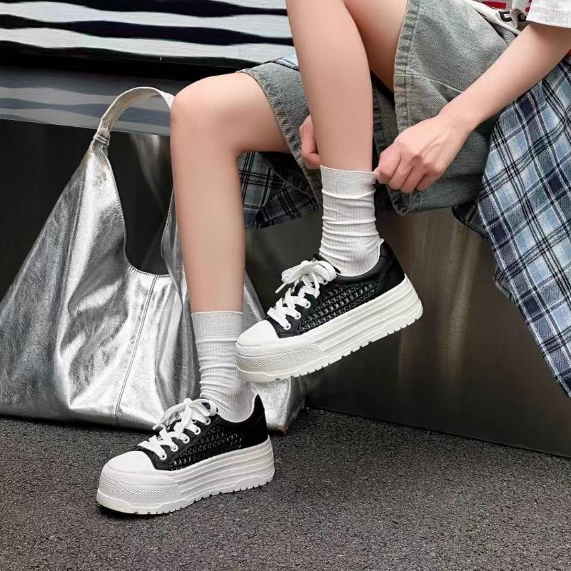 Retro mesh white shoes women's summer new small high lace-up woven breathable casual board shoes tide
