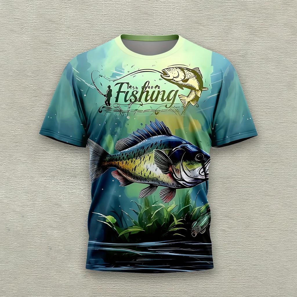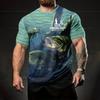 Summer Round Neck 3D Fish Graphic Print Top Fashionable Casual Short Sleeved Men's T-shirts