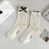 Calcetines de Moda para Mujer Primavera y Otoño Nuevos Calcetines de Algodón de Media Caña con Lazo Bordado