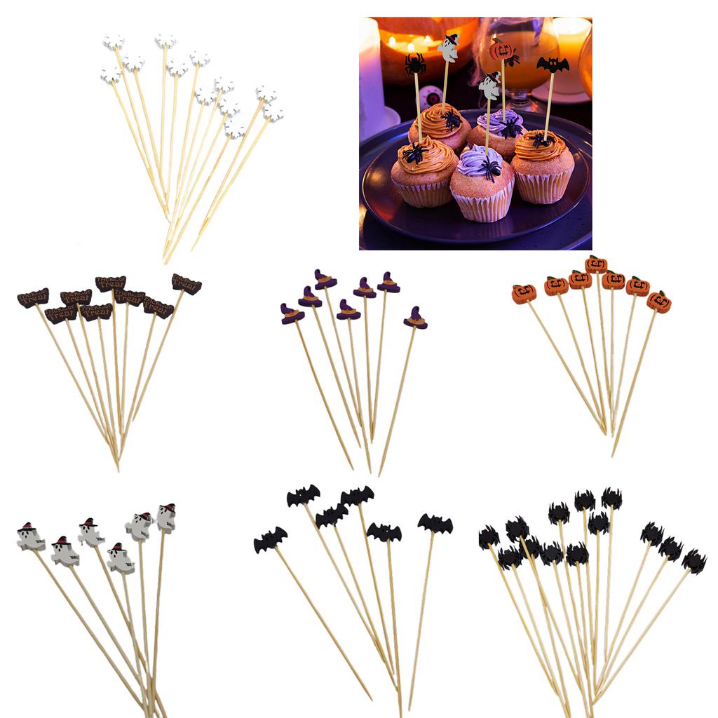 100Pcs Pumpkin Cocktail Sticks Natural Bamboo Toothpicks with Decoration 12cm Cocktail Picks for
