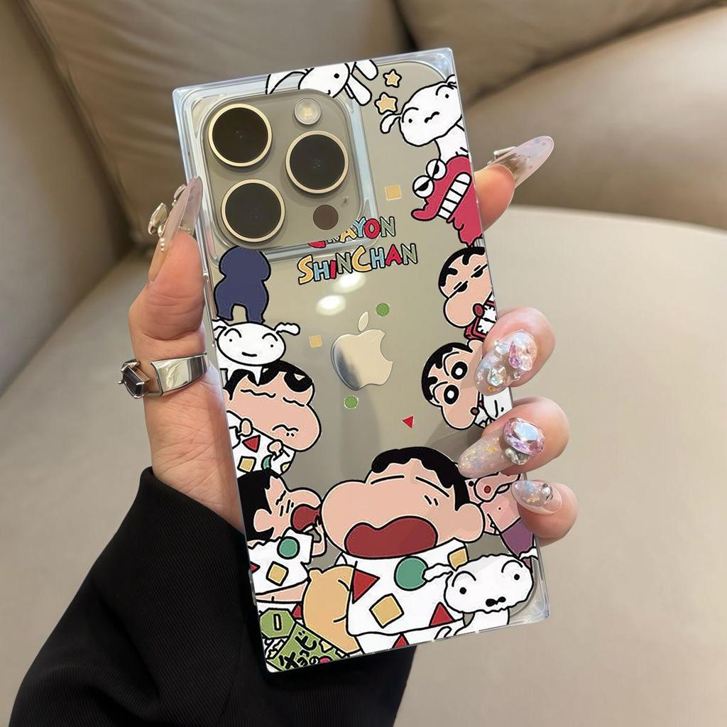 Square Back Tube Protection Clear Case For iPhone 15 Plus 14 Pro Max 16 ProMax 12 13 11 Anti-Oxygen,Cute Crayon Shin Chan Pattern Casing