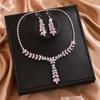 3PC Women's Fashion Zircon Leaf Flower Necklace Earrings and Zircon Set, Suitable for Wedding, Party, and Festival Gifts