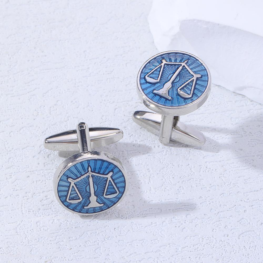 2024 Blue Painted Balance Scale Round Cufflinks Lawyer Suit Men's Shirt Accessories High Quality Alloy Cuff Button Business Gift