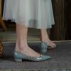 New nude patent leather side empty rivets pointed thick heel shoes shallow mouth willow nail single shoes middle heel shoes children's trendy shoes