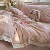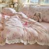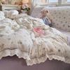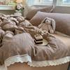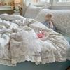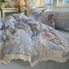 Ins Korean Style Blue Bow Double Layer Gauze Four-Piece Set Simple Lace Edge Duvet Cover Bed Sheet Dormitory 3-Piece Set