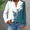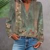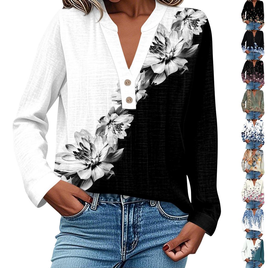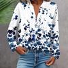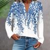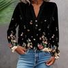 Camisa de Moda y Casual para Mujer Manga Larga Cuello en V Botones Estampada Blusa Top